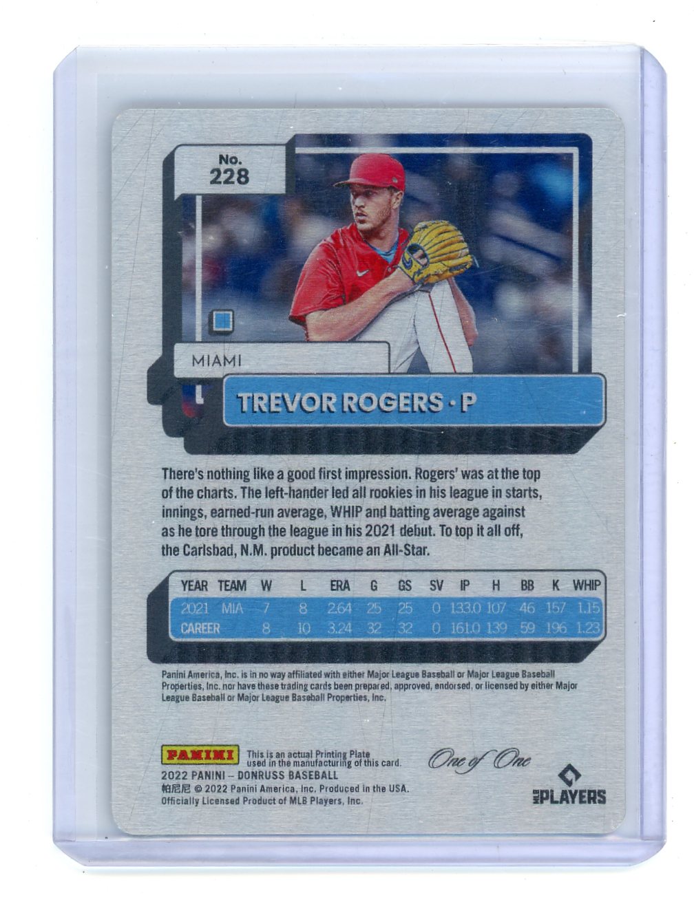 Trevor Rogers 2022 Panini Donruss Yellow Printing Plate One of One