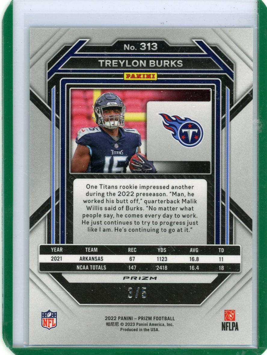 Treylon Burks 2022 Panini Prizm No Huddle light green prizm rookie card #'d 3/5