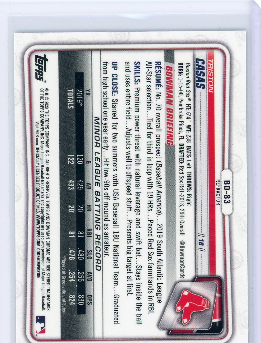 Triston Casas 2020 Bowman Draft Chrome Refractor #BD-83