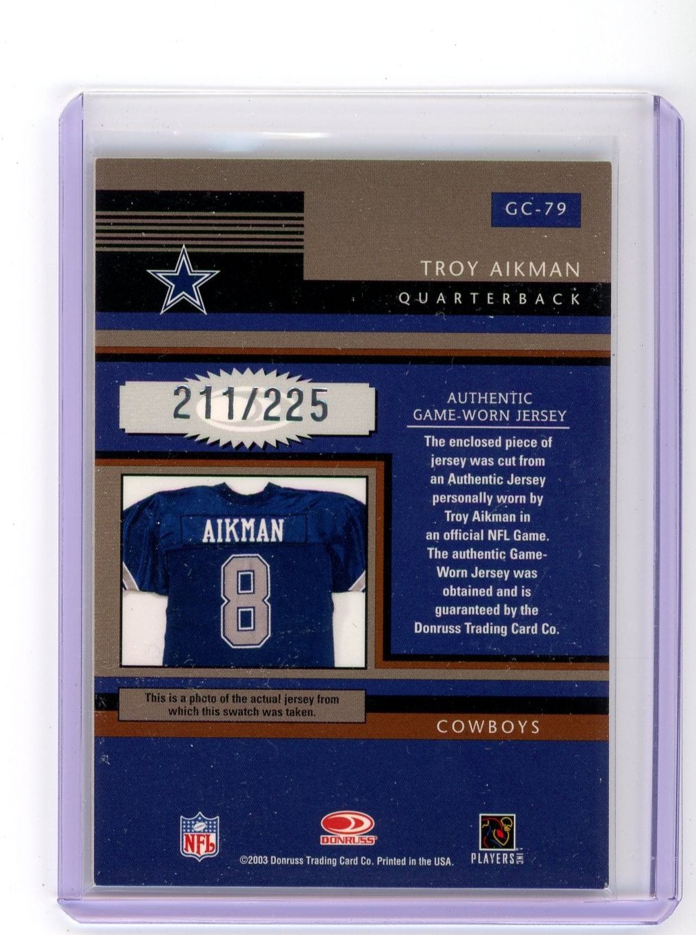 Troy Aikman 2003 Donruss Gridiron Kings Gridiron Cut auth. game-used jersey relic #'d 211/225