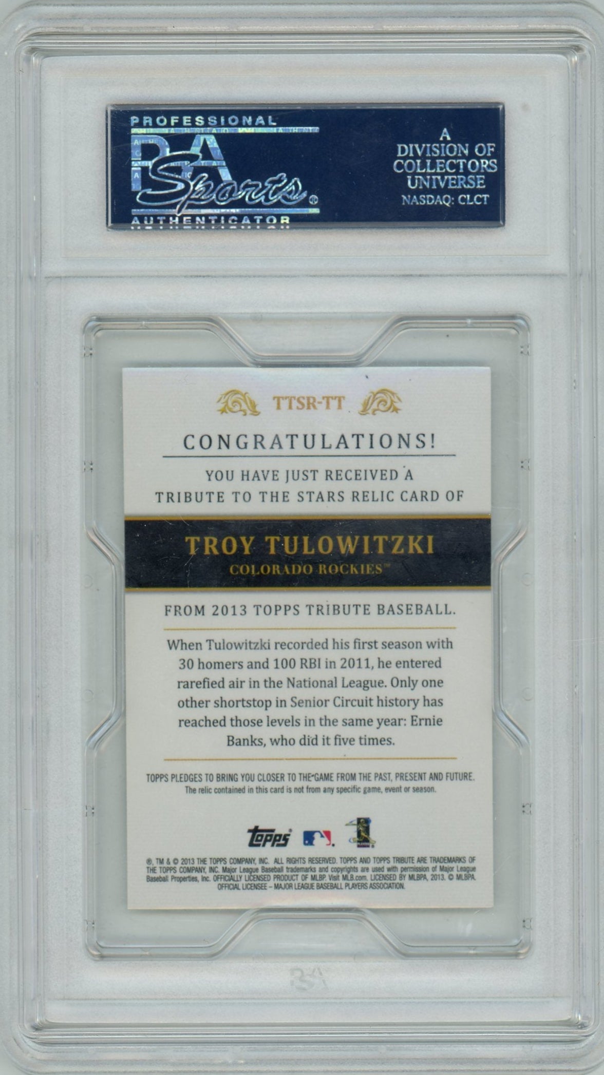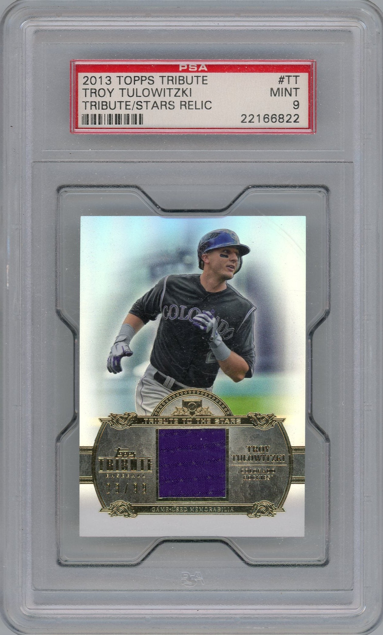 Troy Tulowitzki 2013 Topps Tribute Stars relic #'d 23/99 PSA 9