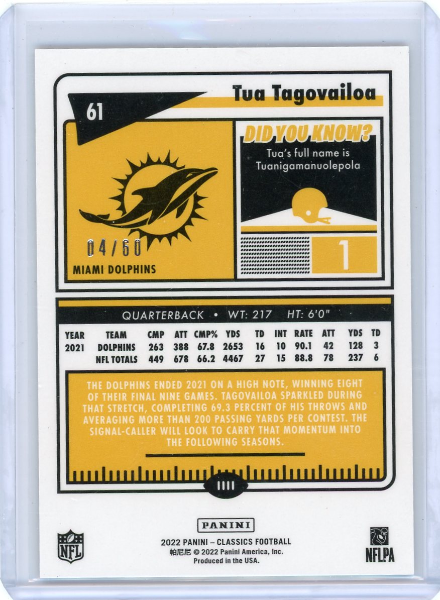 Tua Tagovailoa 2022 Panini Classics gold prizm #'d 04/60