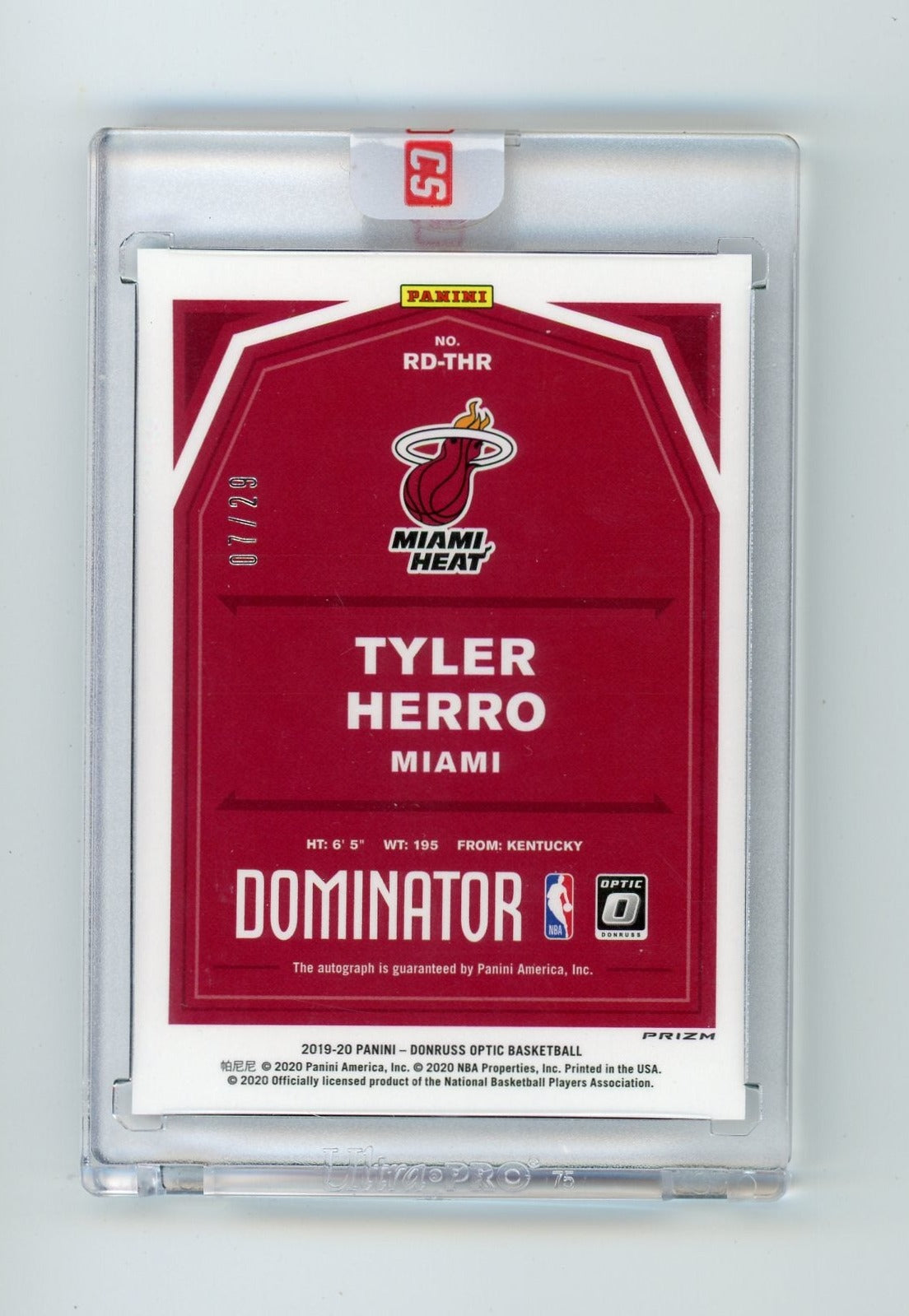 Tyler Herro 2019-20 Panini Donruss Optic Rookie Dominator Signatures Purple Stars FOTL #'d 07/29