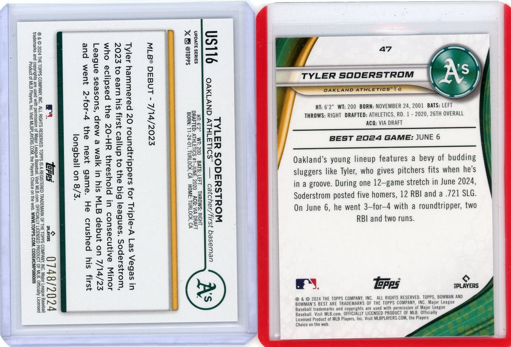 Tyler Soderstrom 2024 Topps 2-card rookie lot #'d /99 + /2024