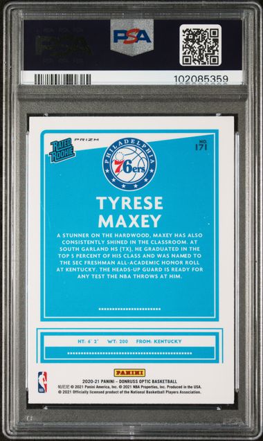 Tyrese Maxey 2020 Panini Donruss Optic Hyper Pink prizm rookie card PSA 10