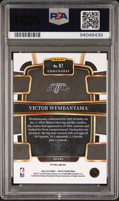 Victor Wembanyama 2023 Panini Select Tri-Color Prizm PSA 9