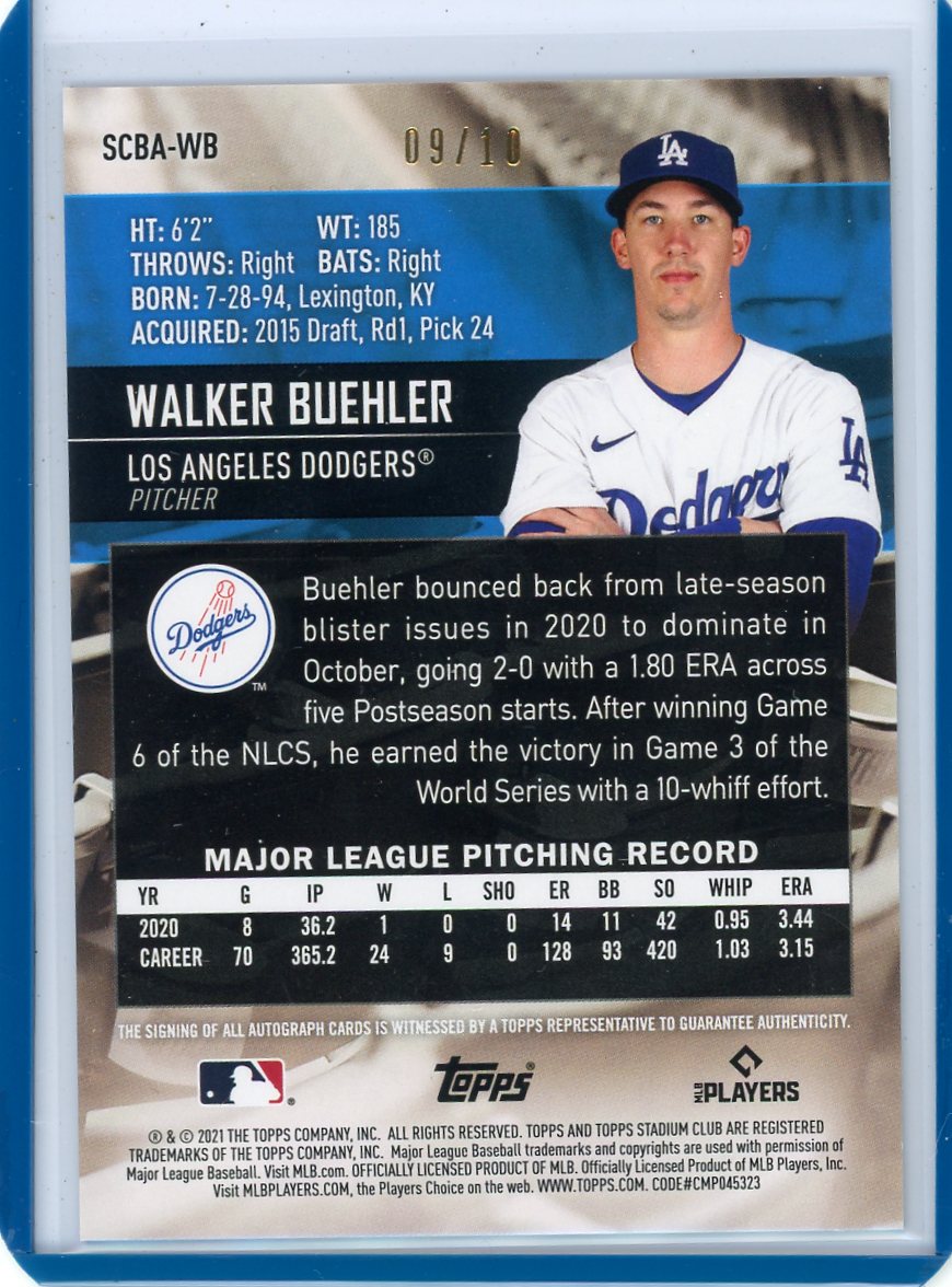 Walker Buehler 2021 Topps Stadium Club Rainbow Foil Autograph #'d 09/10