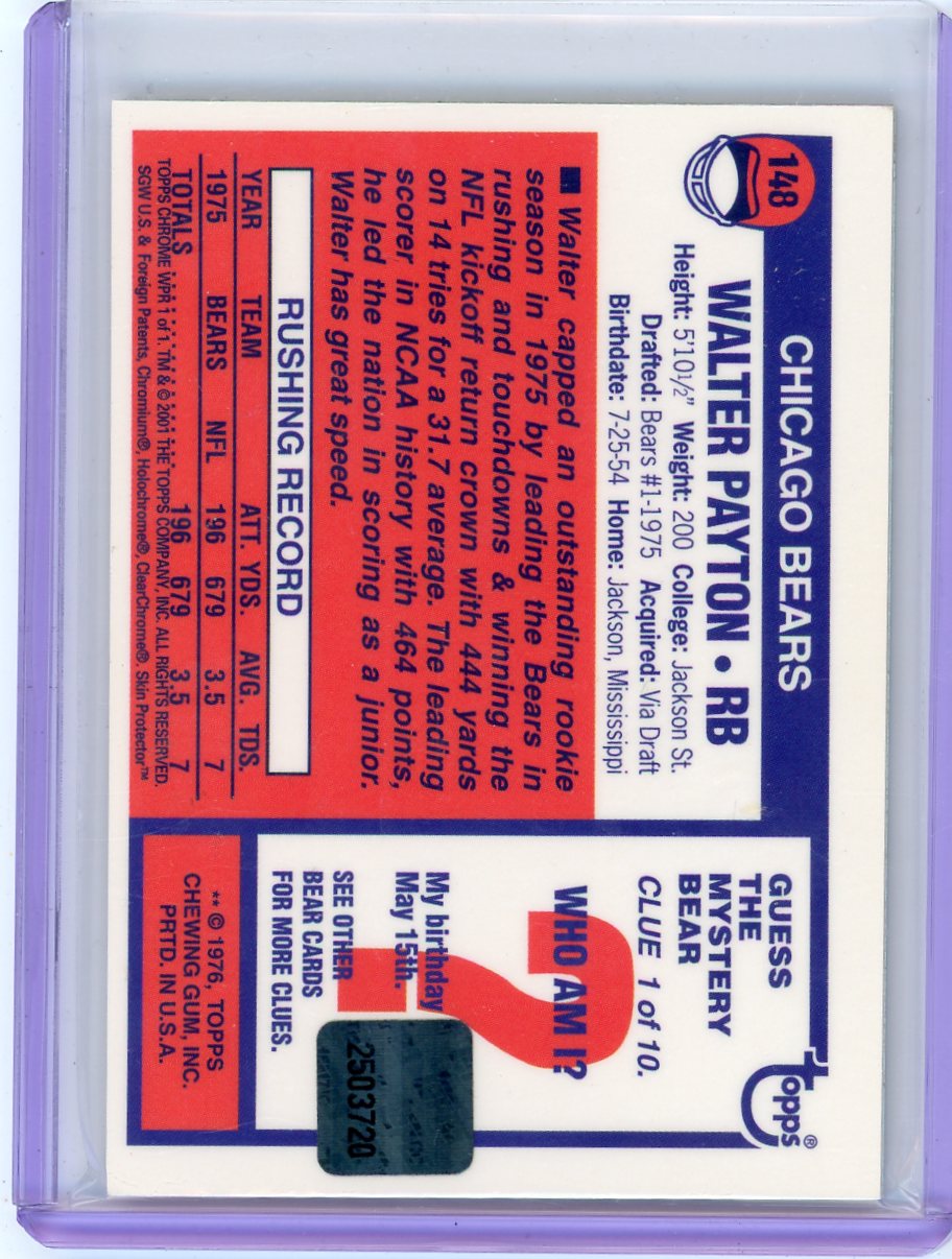 Walter Payton 2001 Topps Chrome Rookie Jersey Relic Refractor