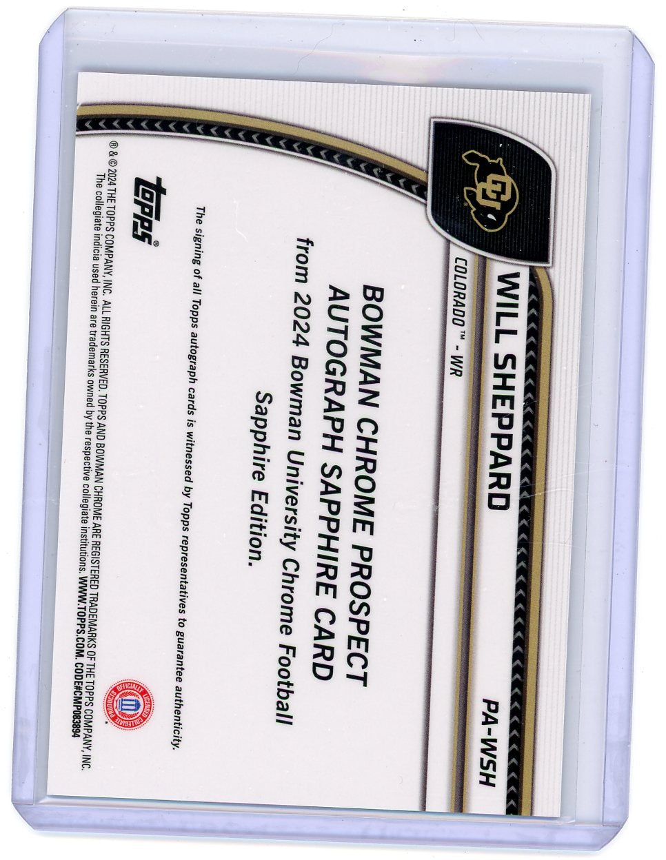 Will Sheppard 2024 Bowman Chrome University Sapphire 1st Bowman Autograph