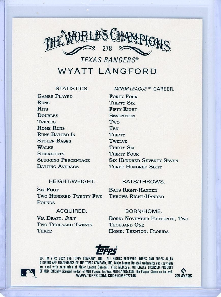 Wyatt Langford 2024 Topps Allen & Ginter Hot Box foil rookie card