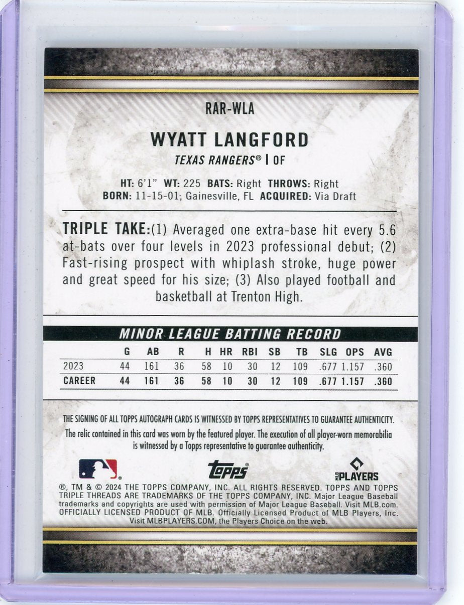Wyatt Langford 2024 Topps Triple Threads autograph relic rookie card #'d 44/50