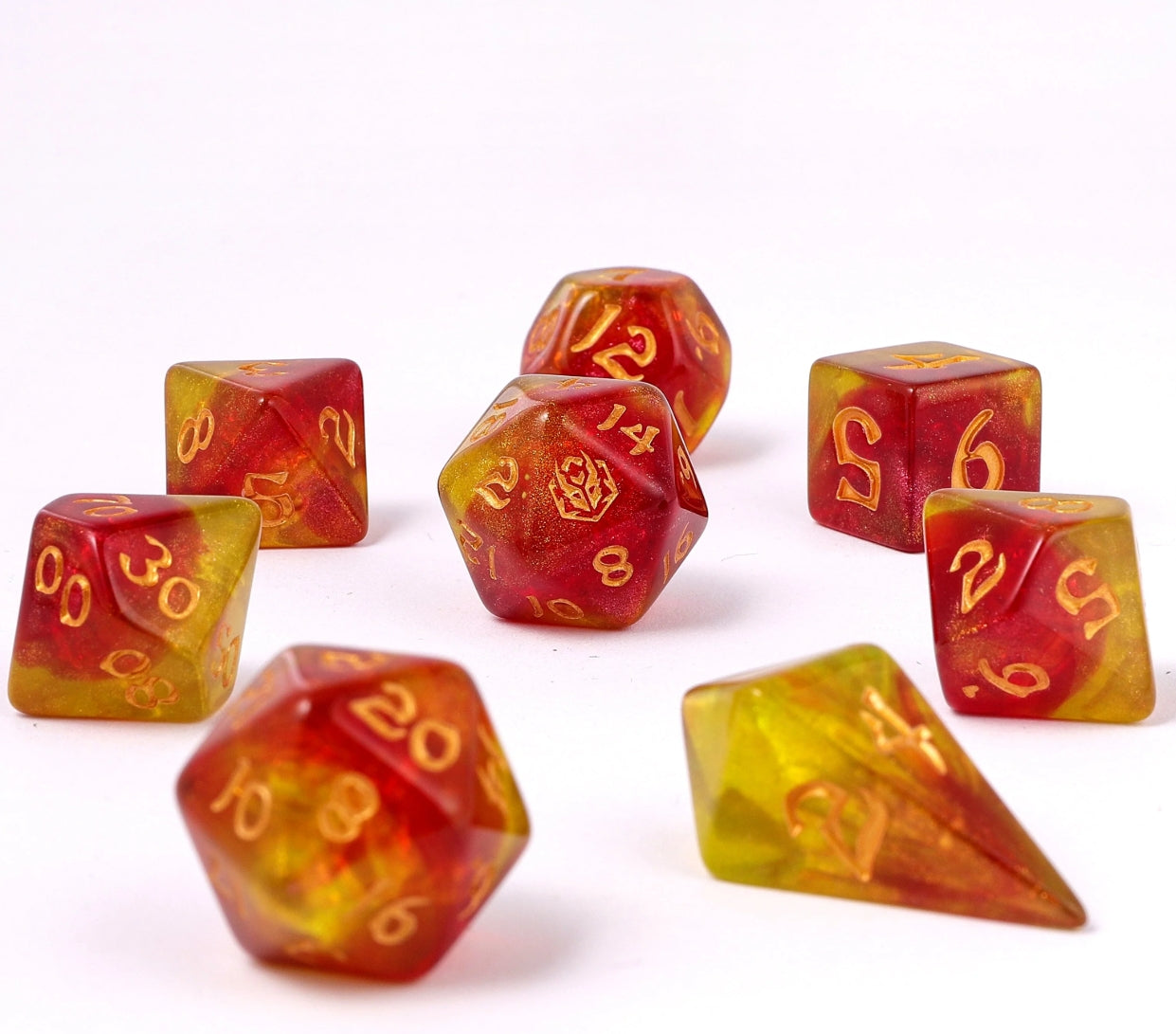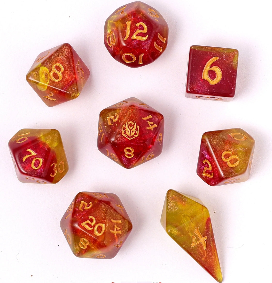 Wyrmforged Rollers - Rounded Edge 8 Piece Polyhedral Dice set - Phoenix Feather