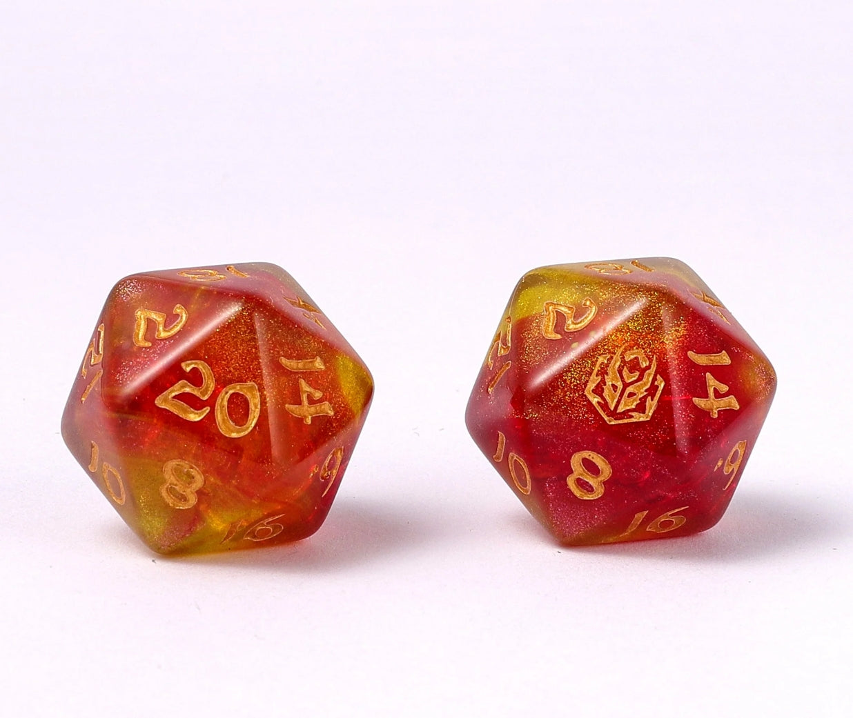 These rounded edge dice sets are larger than most and feature a second D20 and unique shaped D4.
