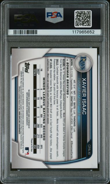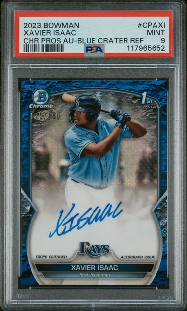 Xavier Isaac 2023 Bowman Chrome Prospects 1st Bowman Aqua Blue Crater Refractor #'d 120/150 PSA 9