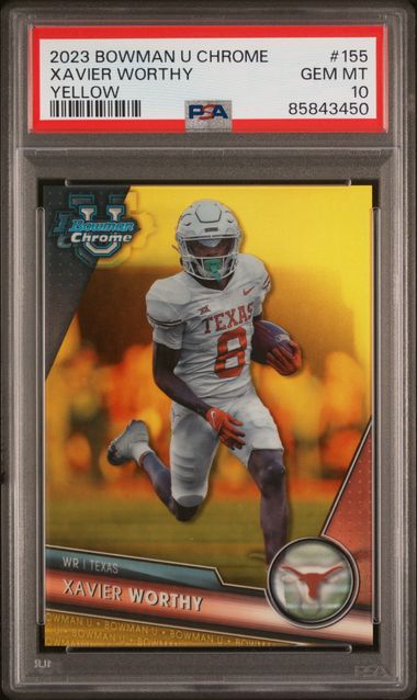Xavier Worthy 2023 Bowman Chrome Yellow ref. #'d 45/75 PSA 10