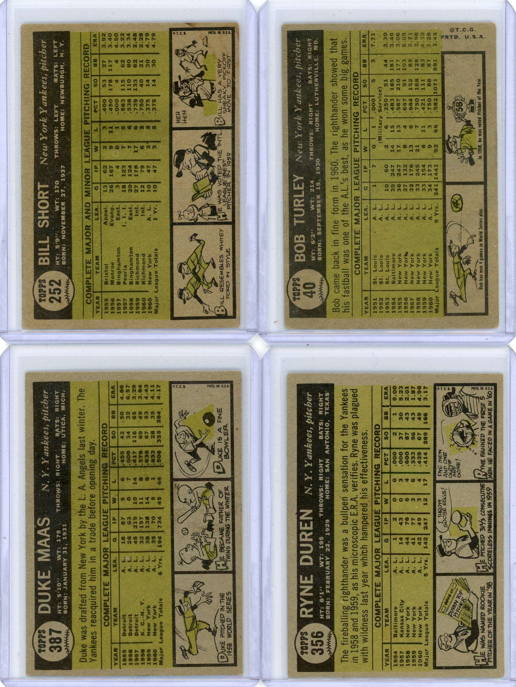 Yankees 1961 Topps 4-card lot #40 #252 #356 #387