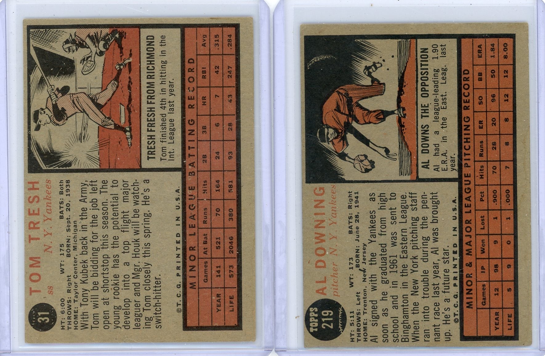Yankees 1962 Topps 2-card Rookie Card Lot #31 #219