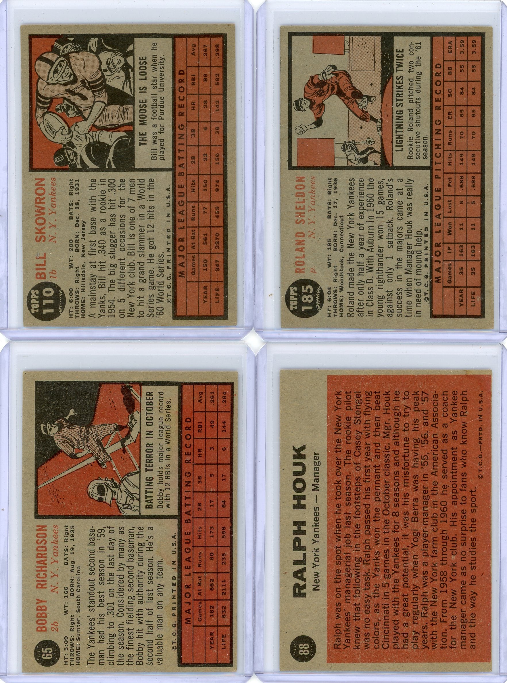 Yankees 1962 Topps 4-card lot #65 #88 #110 #185
