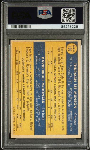 Yankees Rookies Thurman Munson Dave McDonald 1970 Topps #189 PSA 7