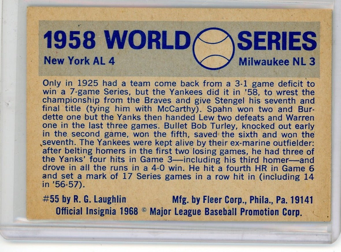 Yankees vs. Braves 1958 World Series 1968 Fleer #55