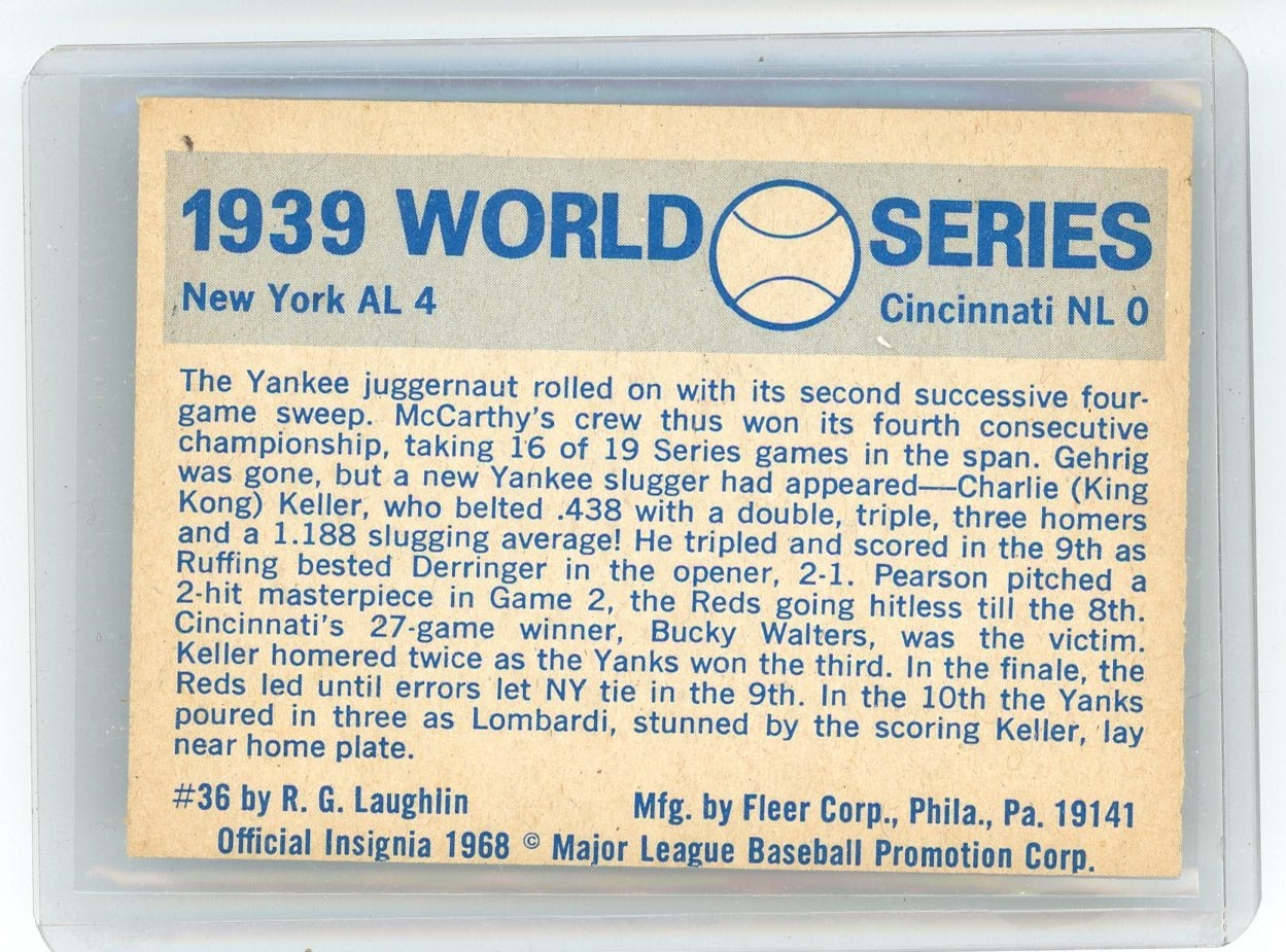 Yankees vs. Reds 1939 World Series 1968 Fleer #36