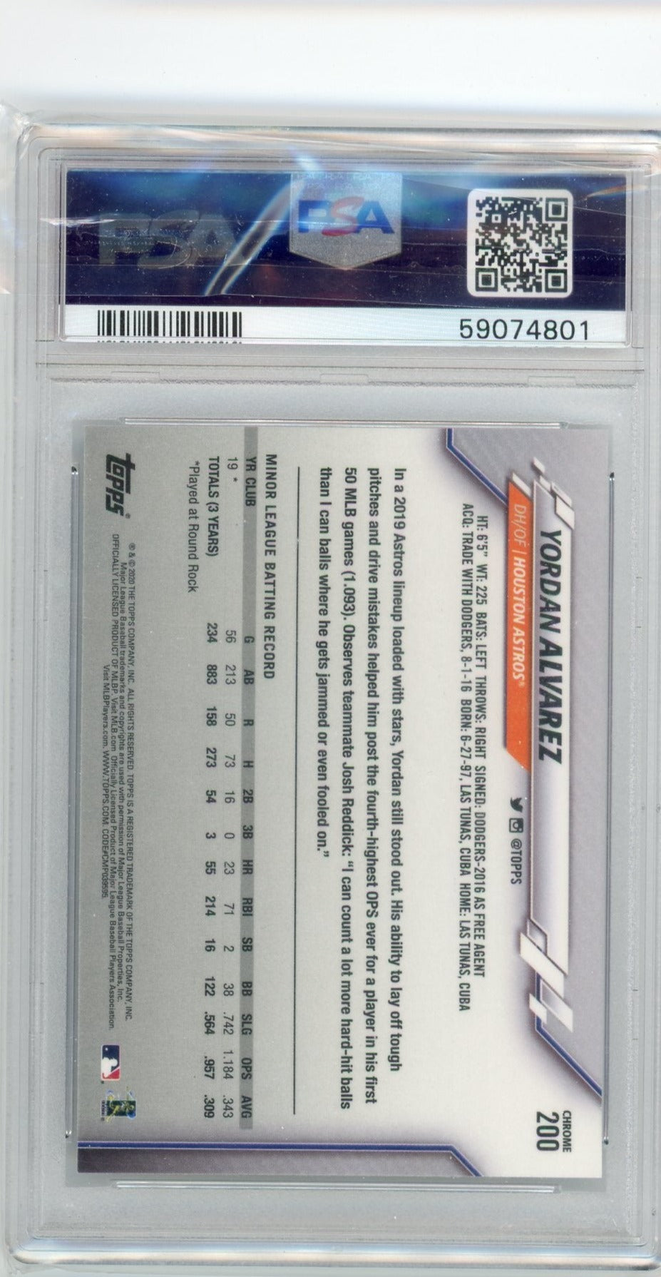 Yordan Alvarez 2020 Topps Chrome Prism Refractor rookie card PSA 10