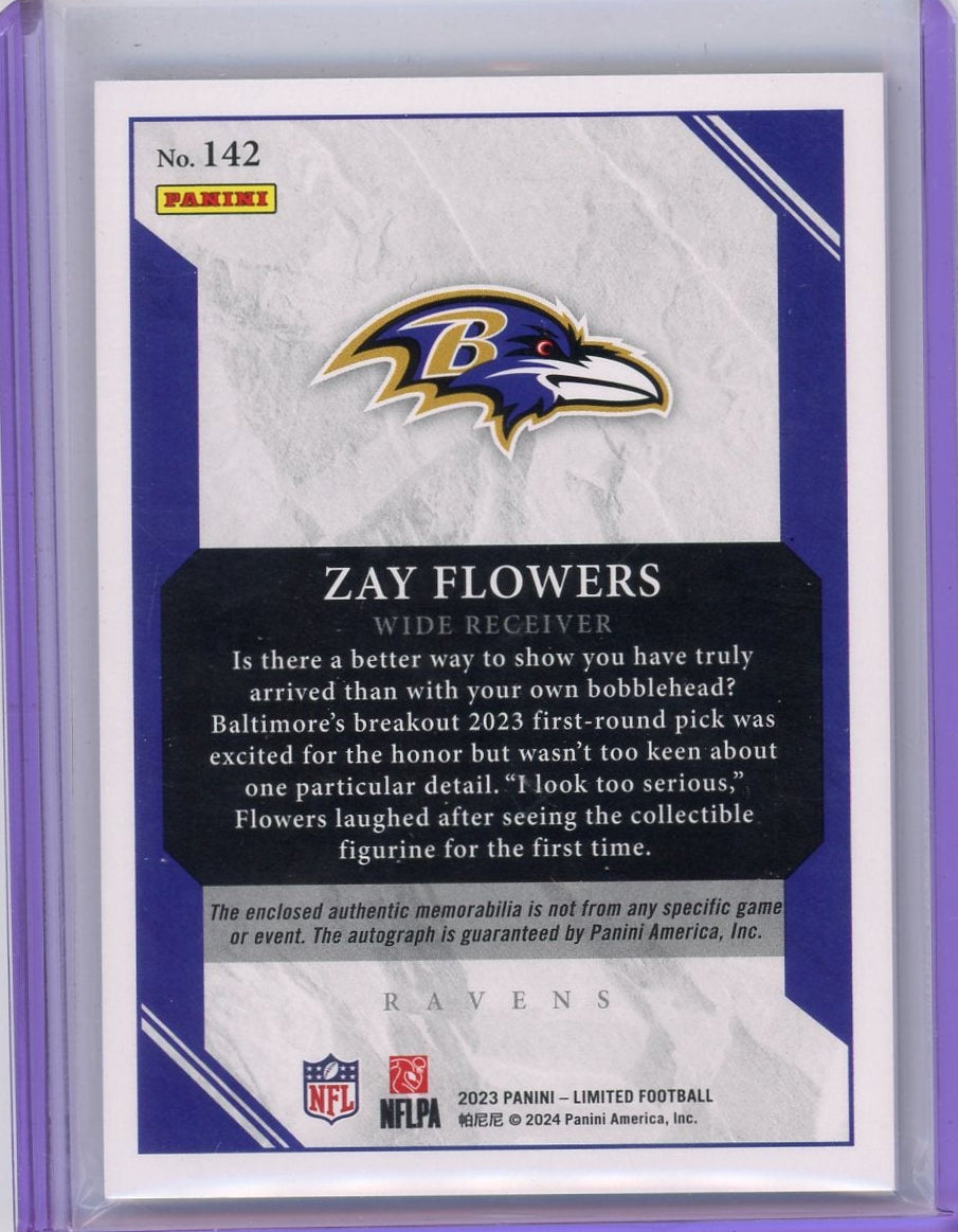 Zay Flowers 2023 Panini Limited Rookie Patch Autograph #'d 75/99